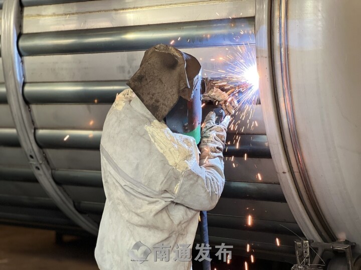 1日,記者走進中集安瑞環(huán)科技股份有限公司(以下簡稱“中集環(huán)科”)生產(chǎn)車間,切身感受一線職工在高溫酷暑季節(jié)的作業(yè)環(huán)境。公司訂單飽滿,生產(chǎn)線馬力全開,工作人員有條不紊地忙碌著。令人印象頗深的是,公司自動化生產(chǎn)線和裝備的投入使用,極大改善了員工的作業(yè)環(huán)境,減輕了人員勞動強度,這也是中集環(huán)科發(fā)展新質(zhì)生產(chǎn)力的生動實踐。早上6點,公司標罐車間十字焊接工李忠付開始今天的工作,中午12點便可下班。今年開始,公司明文規(guī)定要錯開高溫時間段生產(chǎn),保障員工在高溫天氣下的安全與健康?!爱敋鉁剡_到37攝氏度以上,我們下午都是不上班的?!?007年加入中集環(huán)科,李忠付已經(jīng)是一名老師傅,只見他麻利地穿好牛皮防護服、防護手套,戴上焊工防護面罩后,還會把提供涼氣的“空調(diào)衣”準備好,一系列操作行云流水,他開始將加熱管和加強圈陸續(xù)焊接到罐體上。