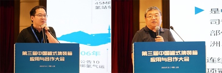 在主題演講環(huán)節(jié),中鐵鐵龍?zhí)胤N箱物流事業(yè)部箱資產管理部負責人欒黎強分享了鐵路罐箱運輸發(fā)展現狀及對未來戰(zhàn)略的思考。中國船級社集裝箱檢驗中心上海分中心業(yè)務總監(jiān)廖英勇介紹了中國船級社助力罐箱應用標準化和智能化所開展的工作。中集安瑞科控股有限公司科技創(chuàng)新中心總經理李東主題演講中分享了氫能裝備的發(fā)展現狀及應用案例。中集安瑞環(huán)科技股份有限公司研究院院長孟慶國介紹了新興產業(yè)引領罐箱定制化發(fā)展的情況。